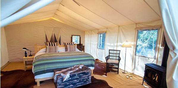 白色亮麗的居住帳篷,質(zhì)地結實且經(jīng)久耐用,簡潔的內(nèi)部裝扮,開放式的布局,保持了視覺上的延續(xù),舒適柔軟的睡床,呼吸著一層之隔的森林純氧,仿佛置身于世外桃源,將少而精的設計理念,運用的恰如其分。