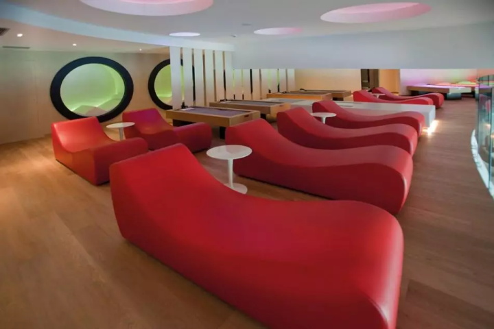 精心設計響應公眾使用:吸音天花板由穿孔和絕緣鋁制成,隔音玻璃。從入口開始,寬敞的大廳歡迎游客,并提供通往溫泉浴場,健康區,商店和食品區,健身區,健身房,衛生設施等的通道。