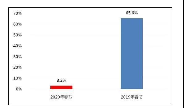 圖4 2020年與2019年“春節”黃金周溫泉企業開房率的對比