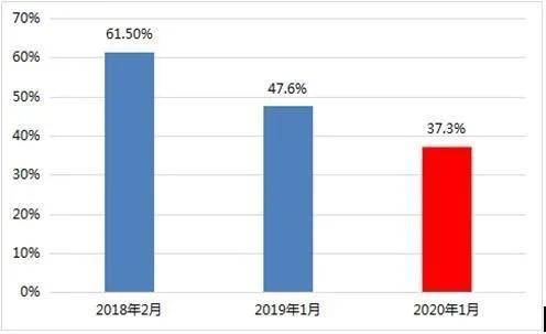 圖2 2018年2月、2019年1月、2020年1月溫泉企業開房率對比